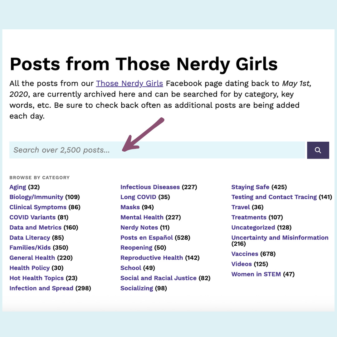 For example, we have written *143* posts on ‘Reproductive Health’, *216* on “Uncertainty and Misinformation’, *227* on ‘Infectious Diseases’ (not just COVID-19) and over *650* posts on vaccines.